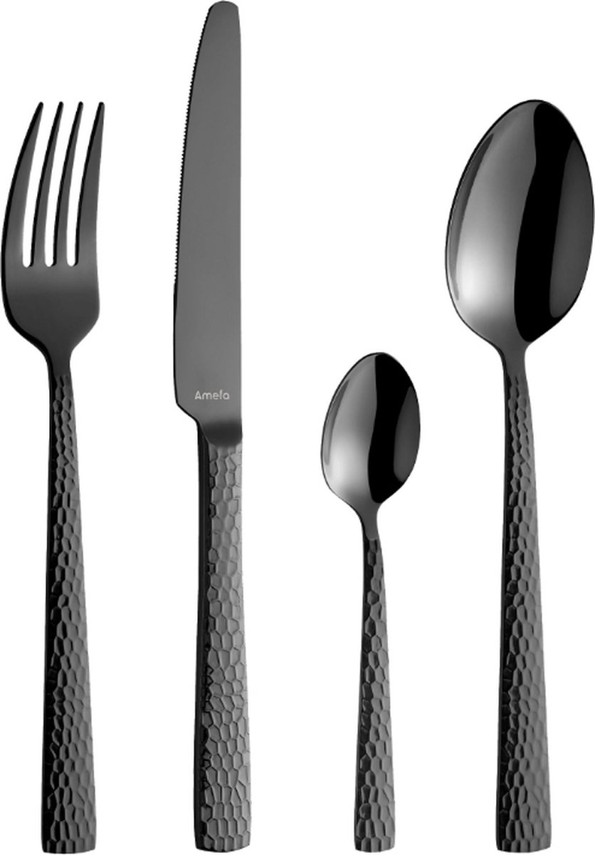 Dit bestek is vaatwasmachinebestendig en ontworpen voor dagelijks gebruik. Om de schitterende zwarte glans te behouden, raden wij aan om het met de hand te reinigen en schuursponsjes, bleekmiddel of soda te vermijden. Droog het bestek na het reinigen voorzichtig af met een zachte doek voor de beste resultaten.