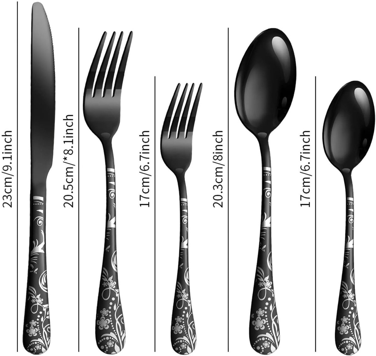 - Compleet voor 4 personen: De set bevat alles wat je nodig hebt, inclusief messen, vorken, lepels en taartvorken, perfect voor gezelschappen of gezinnen.