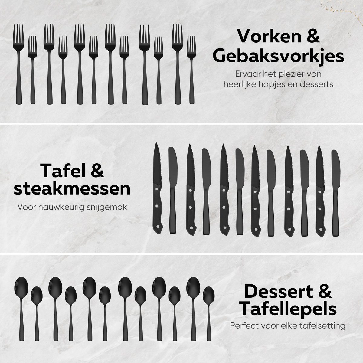 Master Knives© Zwarte 36-delige Bestekset voor 6 Personen