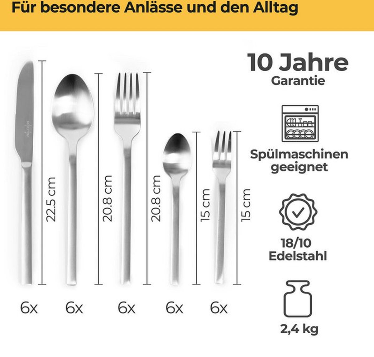 Ontdek de perfecte combinatie van stijl, functionaliteit en duurzaamheid met onze hoogwaardige bestekset, ontworpen voor maximaal 6 personen. Of u nu een gewone maaltijd bereidt of een feestelijke gelegenheid viert, deze set biedt alles wat u nodig heeft om uw tafel stijlvol en compleet te dekken.