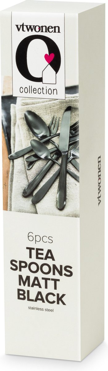 Maak je theemoment extra stijlvol met deze stijlvolle vtwonen theelepeltjes in een moderne matzwarte finish. Of geef ze cadeau aan een liefhebber van design en functionaliteit – ideaal voor elke gezellige gelegenheid. Deze set bestaat uit zes hoogwaardige theelepeltjes, perfect om je kopje thee of koffie een elegante touch te geven. De bijgeleverde zwarte stoffen etui maakt het makkelijk om de lepels netjes op te bergen of mee te nemen, zodat je altijd klaar bent voor een kopje thee onderweg.